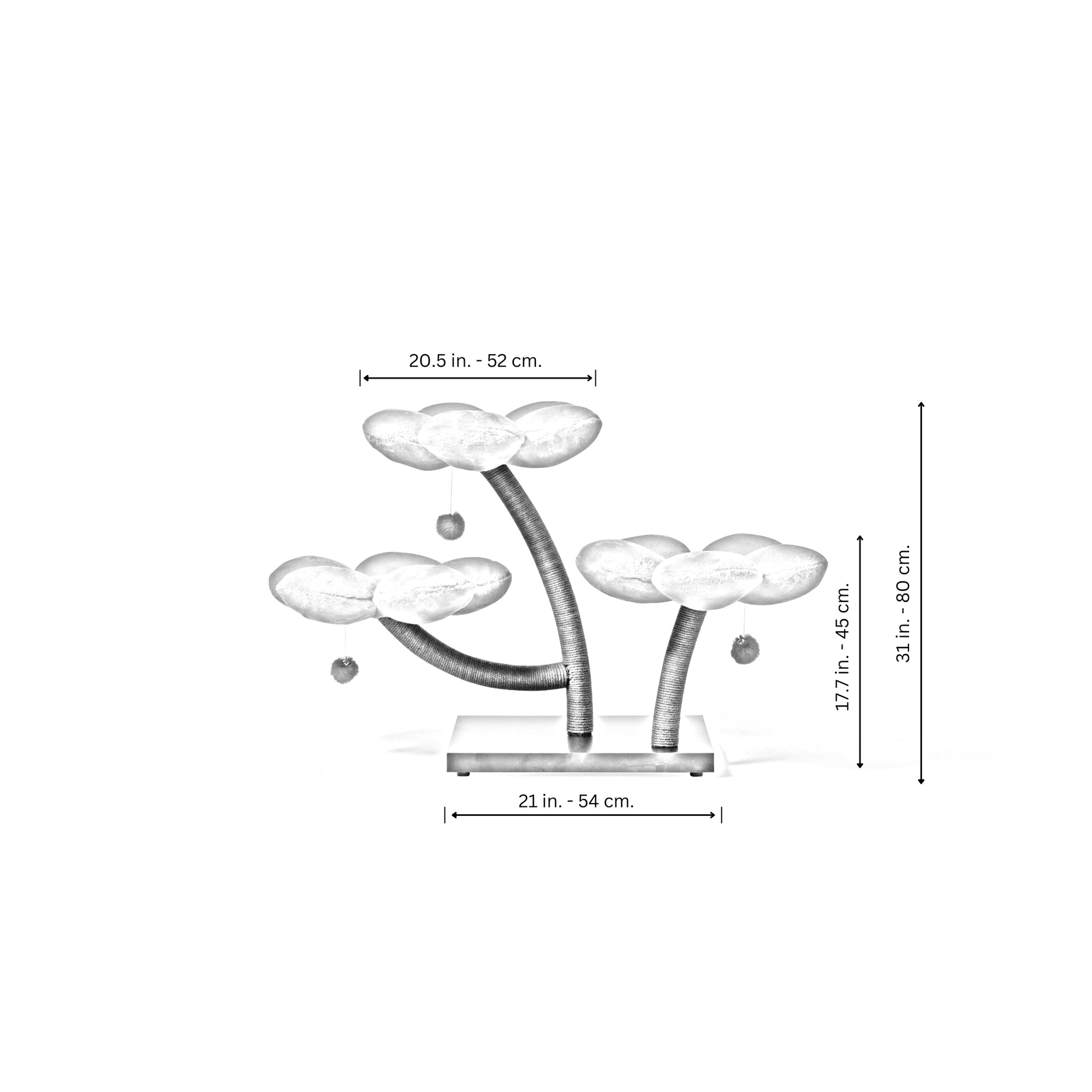 Zarif ve fonksiyonel bir tasarıma sahip bu özel kedi evi, kedinizin oyun, tırmanma ve dinlenme ihtiyaçlarını karşılamak için özenle tasarlanmıştır. Üç farklı seviyedeki geniş platformlar, aynı zamanda yumuşak dokulu kedi yatağı işlevi görerek kedinize konforlu bir alan sunar. Her platformun altında yer alan sarkıt oyuncaklar, kedinizin eğlenceli vakit geçirmesini sağlar.